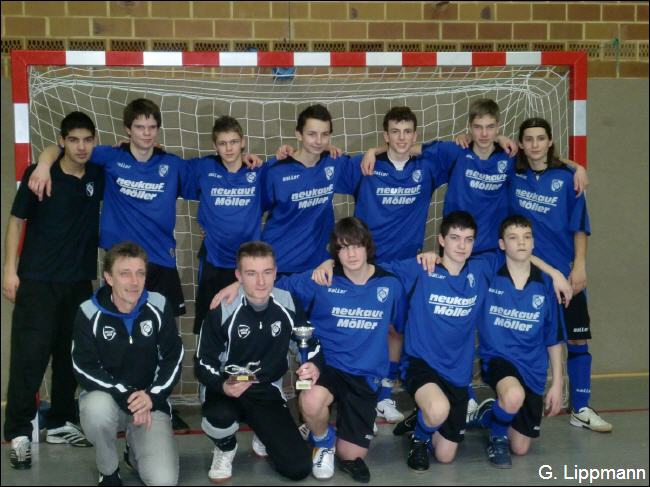 Die Art und Weise war schon einfach klasse, keine Niederlage, gute Spielzüge – gab auch schlechte, aber die Guten waren mehr zu sehen - und das nach dem Boxtraining gestern. Euch allen taten die Knochen weh und Muskeln, die ihr kaum kanntet. Ihr habt nicht nur uns Eltern begeistert auch die Trainer der anderen Mannschaften. Als Beweis dafür wurde Lars als bester Torwart des Turniers ausgezeichnet. Verdient hättet Ihr als Mannschaft auch diese Auszeichnung, aber die gab es heute in der Halle nicht, daher jetzt hier: |
