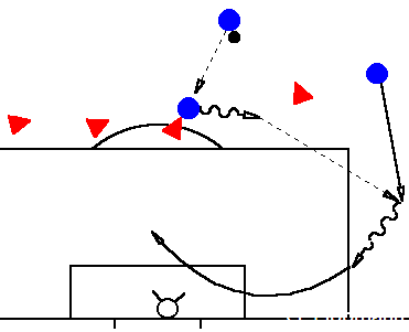 Wie bereits erwähnt ist ballorientiertes Verschieben ebenfalls ein Muß! Ein Kreuzen der Laufwege ist möglichst zu vermeiden, jeder agiert in seiner Zone. Wer den kürzesten Weg zum Ballbesitzer hat, stellt diesen. Die Nebenleute rücken heran und sichern ab.